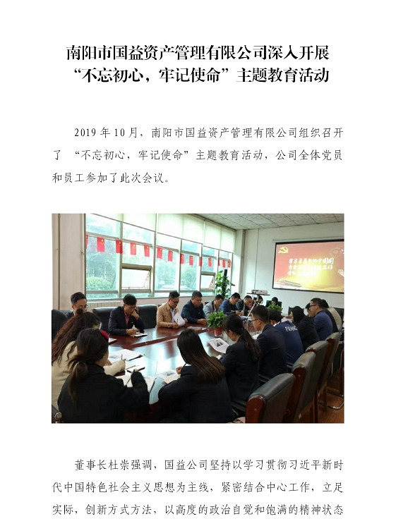 南陽市國益資產(chǎn)管理有限公司深入開展 “不忘初心,牢記使命”主題教育活動(dòng)